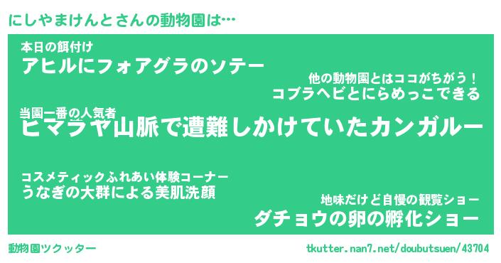 | 2回繰り返すあだ名 | 『にしにし』『ににしし』『うねうね』 |