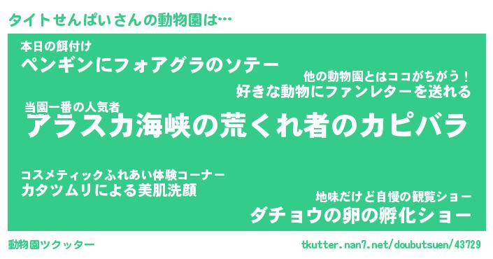 | 2回繰り返すあだ名 | 『タイタイ』『タタイイ』『うねうね』 |