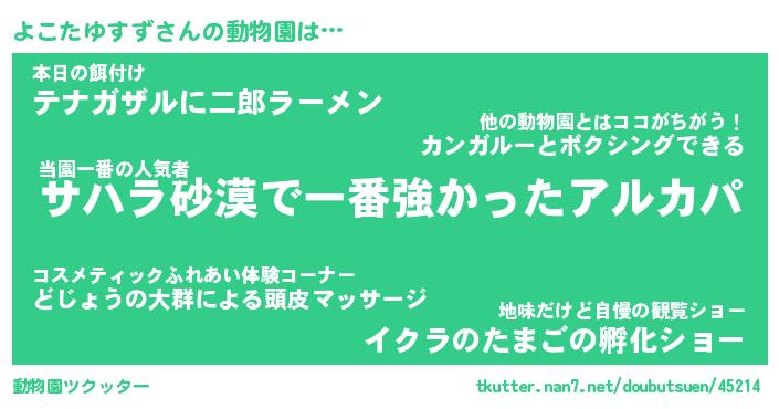 | 2回繰り返すあだ名 | 『よこよこ』『よよここ』『うねうね』 |
