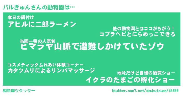 | 2回繰り返すあだ名 | 『バルバル』『ババルル』『かたかた』 |