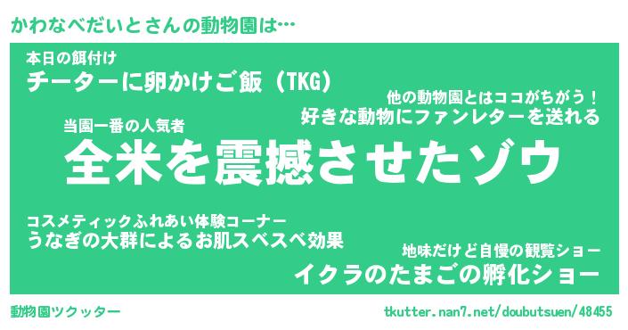 | 2回繰り返すあだ名 | 『かわかわ』『かかわわ』『うろうろ』 |