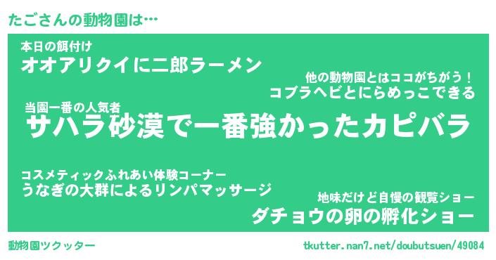 | 2回繰り返すあだ名 | 『たごたご』『たたごご』『けらけら』 |