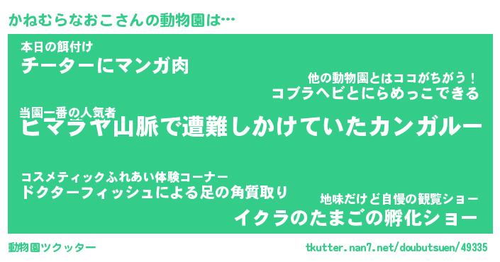 | 2回繰り返すあだ名 | 『かねかね』『かかねね』『ぬれぬれ』 |