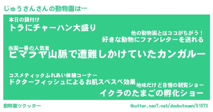 | 2回繰り返すあだ名 | 『じゅじゅ』『じじゅゅ』『おろおろ』 |