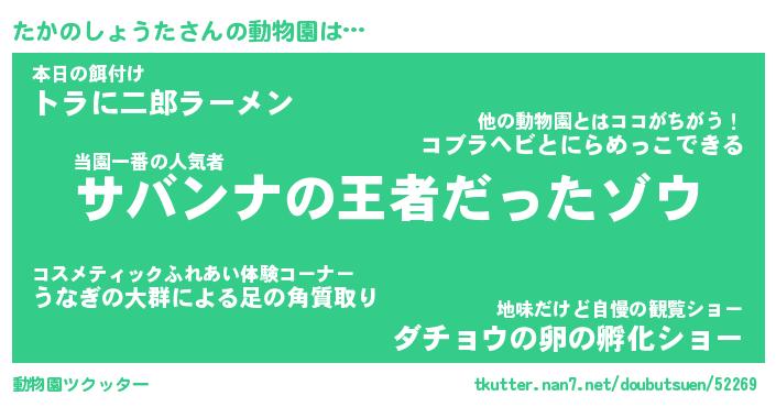 | 2回繰り返すあだ名 | 『たかたか』『たたかか』『あんあん』 |
