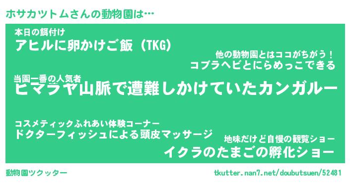 | 肩書あだ名 | 『ホサカツトム社長』『ホサカツトム班長』 |