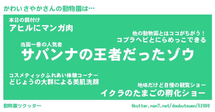 | 2回繰り返すあだ名 | 『かわかわ』『かかわわ』『いそいそ』 |