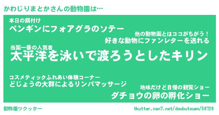 | 2回繰り返すあだ名 | 『かわかわ』『かかわわ』『ぬらぬら』 |