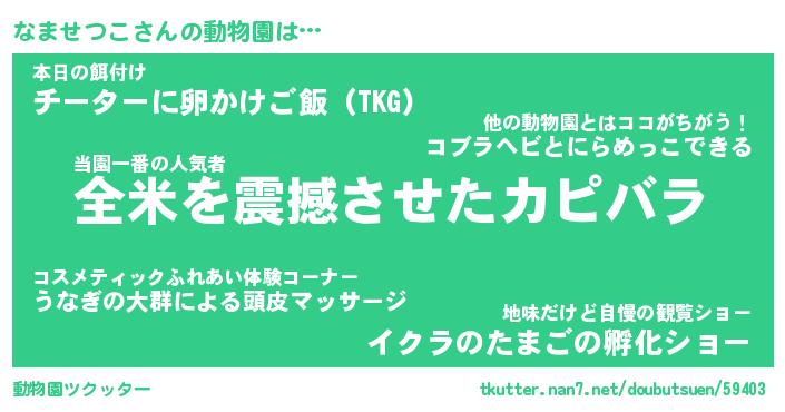 | 2回繰り返すあだ名 | 『なまなま』『ななまま』『ねちねち』 |