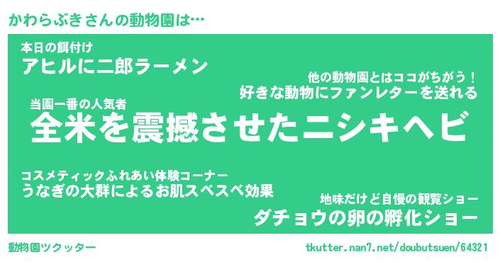 | ヒーロー風カッコイイあだ名 | 『スーパーカワラブキ』『幻影騎士カワ』 |
