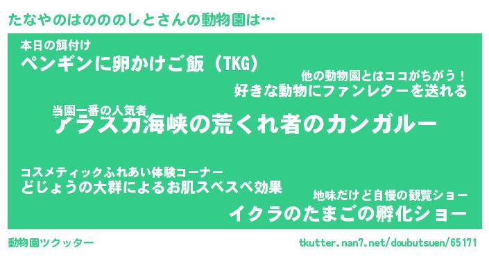 | 料理風あだ名 | 『節約★たなやのはのののしとと油揚げの玉子丼』 |