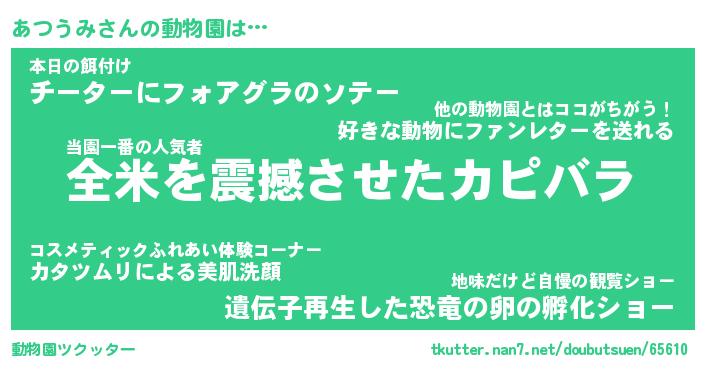 | 意味不明あだ名 | 『ペロリンあつうみ』『永久保存あつうみ』 |