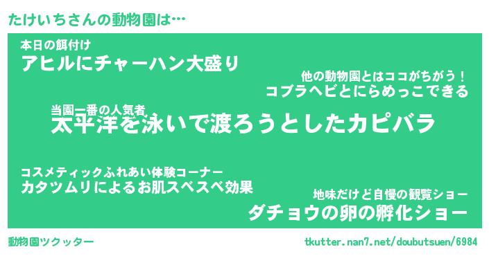 | 2回繰り返すあだ名 | 『たけたけ』『たたけけ』『おやおや』 |