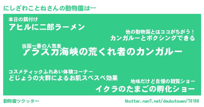 | 2回繰り返すあだ名 | 『にしにし』『ににしし』『うねうね』 |