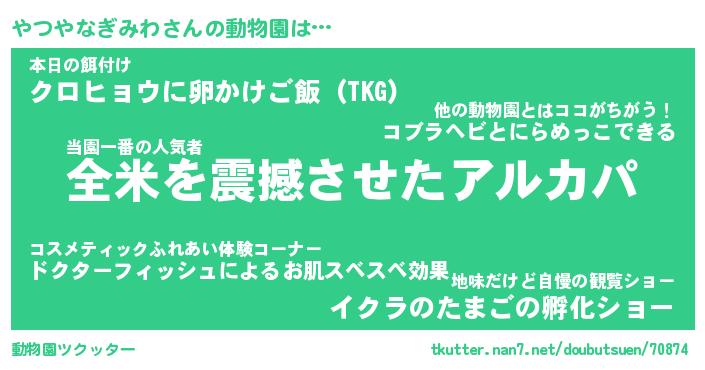 | 2回繰り返すあだ名 | 『やつやつ』『ややつつ』『うねうね』 |