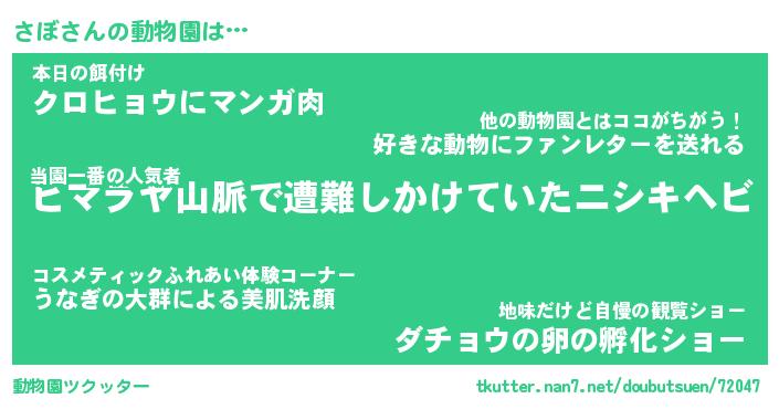 | 2回繰り返すあだ名 | 『さぼさぼ』『ささぼぼ』『にたにた』 |