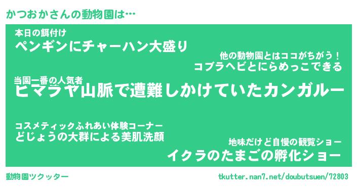 | 2回繰り返すあだ名 | 『かつかつ』『かかつつ』『あんあん』 |