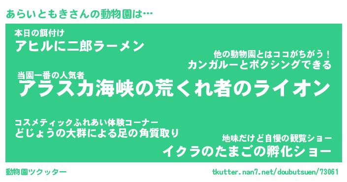 | 肩書あだ名 | 『あらいともきCEO』『あらいともき大統領』 |