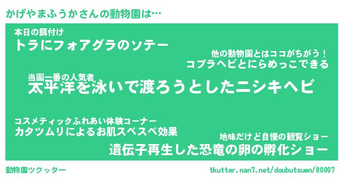 | 2回繰り返すあだ名 | 『かげかげ』『かかげげ』『ぬるぬる』 |