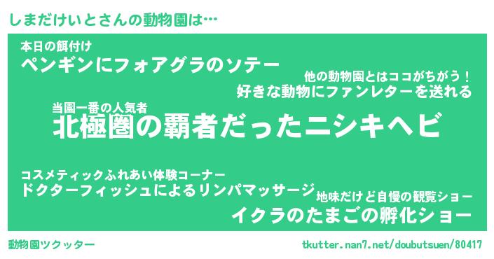 | 2回繰り返すあだ名 | 『しましま』『ししまま』『ぬめぬめ』 |
