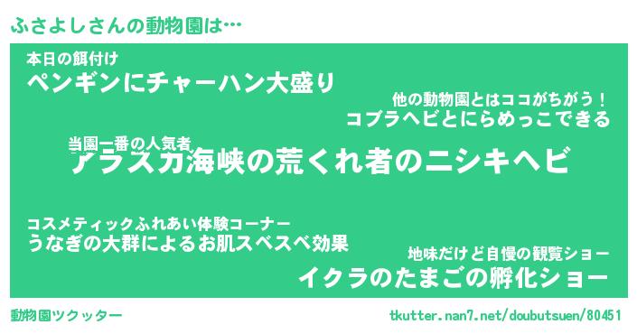 | 2回繰り返すあだ名 | 『ふさふさ』『ふふささ』『おやおや』 |