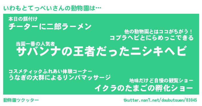 | 2回繰り返すあだ名 | 『いわいわ』『いいわわ』『ぎしぎし』 |