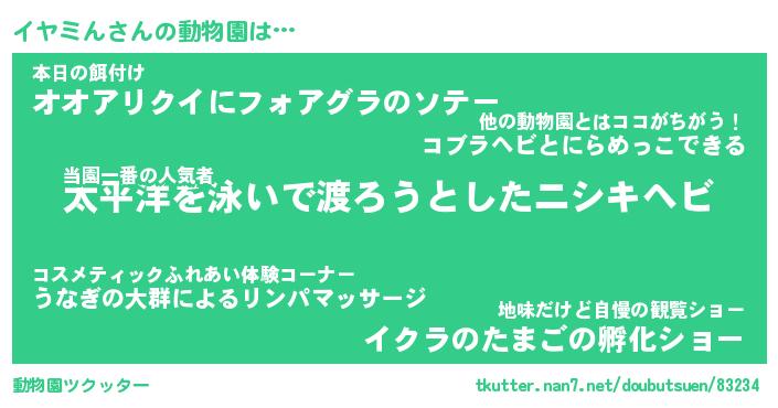 | 意味不明あだ名 | 『ペロリンイヤミん』『永久保存イヤミん』 |