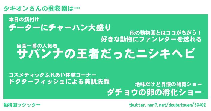| 2回繰り返すあだ名 | 『タキタキ』『タタキキ』『にたにた』 |