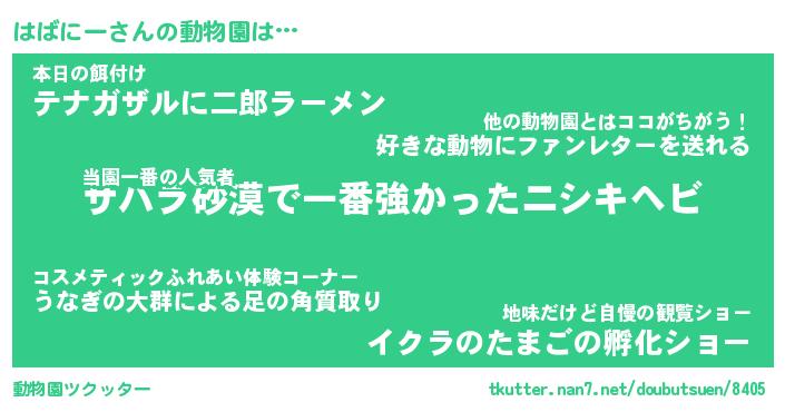 | 2回繰り返すあだ名 | 『はばはば』『ははばば』『ぬれぬれ』 |