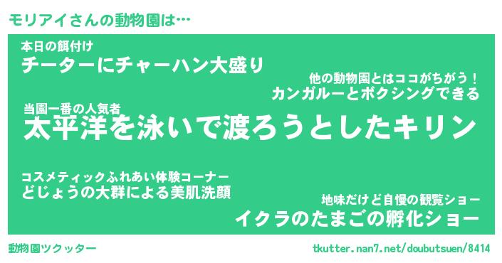 | 2回繰り返すあだ名 | 『モリモリ』『モモリリ』『うろうろ』 |