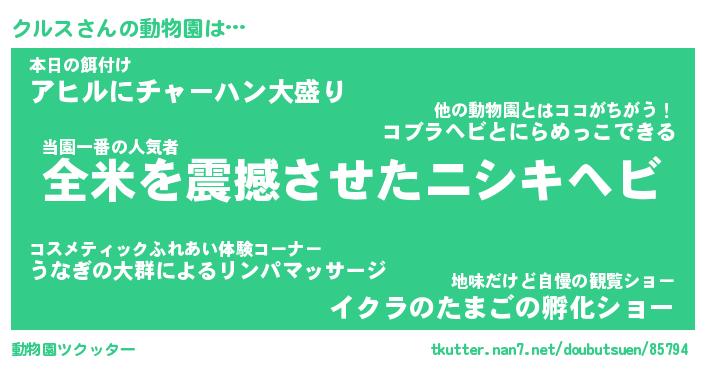 | 2回繰り返すあだ名 | 『クルクル』『ククルル』『あんあん』 |