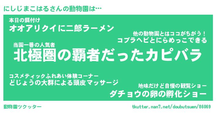 | 2回繰り返すあだ名 | 『にしにし』『ににしし』『ねとねと』 |