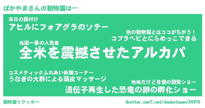 | 2回繰り返すあだ名 | 『ばかばか』『ばばかか』『けほけほ』 |
