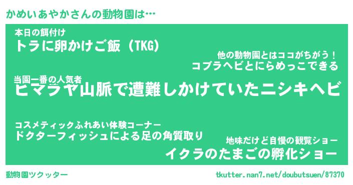 | ツイッター | かめいあやかさんのツイッターID『dendenmushi_idle』 |
