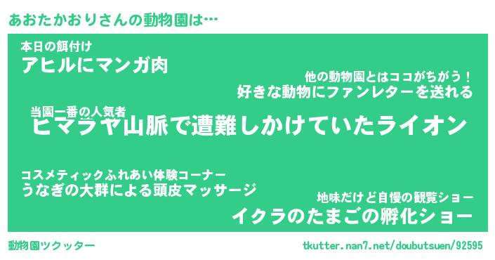 | 2回繰り返すあだ名 | 『あおあお』『ああおお』『ぐえぐえ』 |
