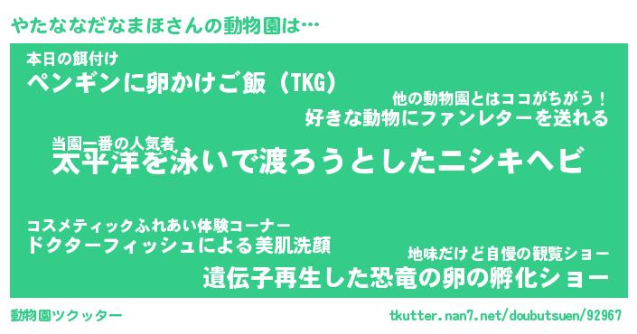 | 2回繰り返すあだ名 | 『やたやた』『ややたた』『なあなあ』 |