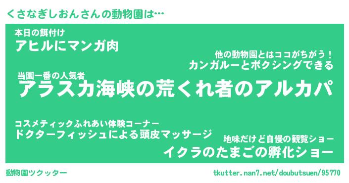| 2回繰り返すあだ名 | 『くさくさ』『くくささ』『ぬめぬめ』 |