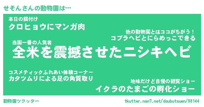 | 2回繰り返すあだ名 | 『せそせそ』『せせそそ』『ぬれぬれ』 |