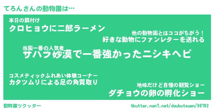 | 2回繰り返すあだ名 | 『てろてろ』『ててろろ』『ごろごろ』 |