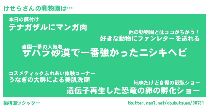 | 2回繰り返すあだ名 | 『けせけせ』『けけせせ』『ぎしぎし』 |