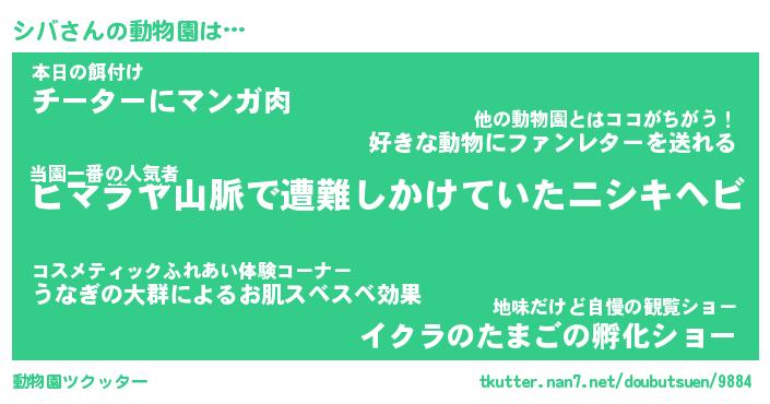 | 2回繰り返すあだ名 | 『シバシバ』『シシババ』『うろうろ』 |