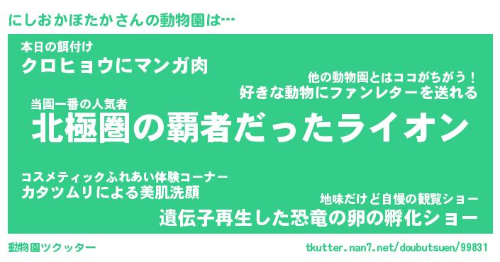 | 2回繰り返すあだ名 | 『にしにし』『ににしし』『ごそごそ』 |