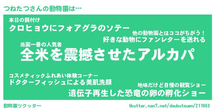 | ツイッター | つねたつさんのツイッターID『namakemono_kun』 |