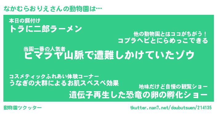 | 料理風あだ名 | 『節約★なかむらおりえと油揚げの玉子丼』 |