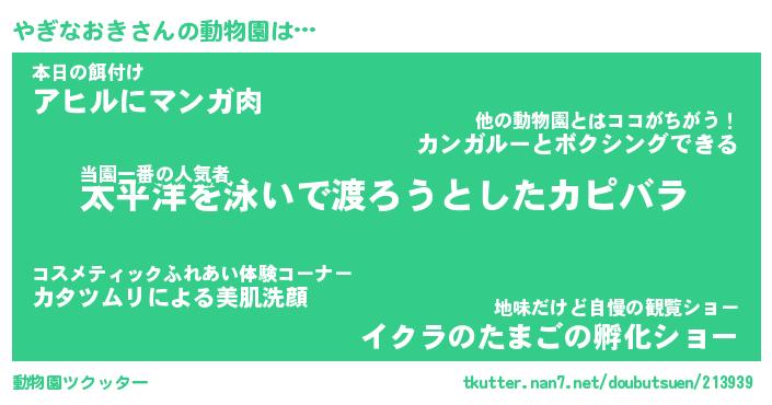 | 2回繰り返すあだ名 | 『やぎやぎ』『ややぎぎ』『のろのろ』 |