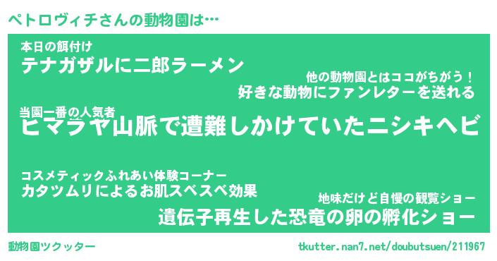 | ヘコむあだ名 | 『ペトにゅー』『なまこ酢』『ペトを』 |