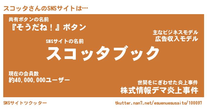 | 肩書あだ名 | 『スコッタ社長』『スコッタ大統領』 |