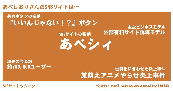 | 男性向けラノベタイトル風あだ名 | 『あべしおりの憂鬱』 |