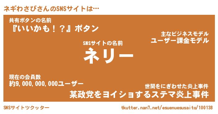 | 男性向けラノベタイトル風あだ名 | 『ネギわさびの憂鬱』 |