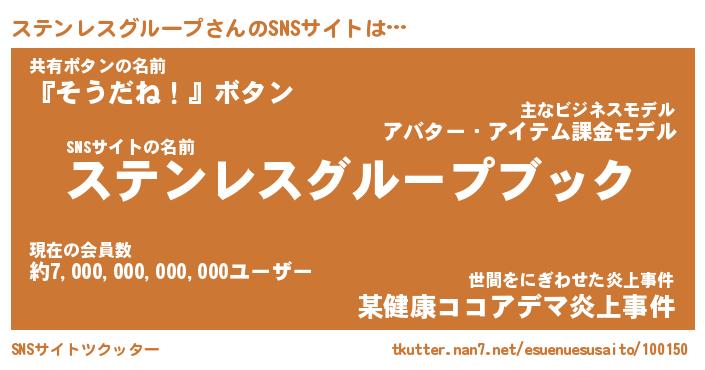 | ツイッター | ステンレスグループさんのツイッターID『namakemono_man』 |